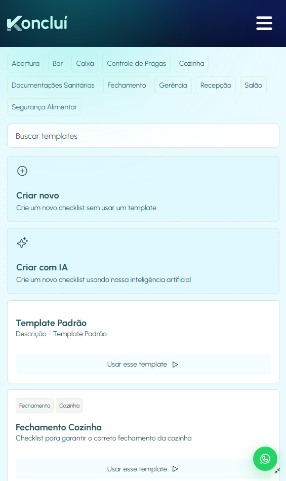A Koncluí transforma processos e tarefas complicadas em checklists simples e fáceis de executar pela sua equipe.